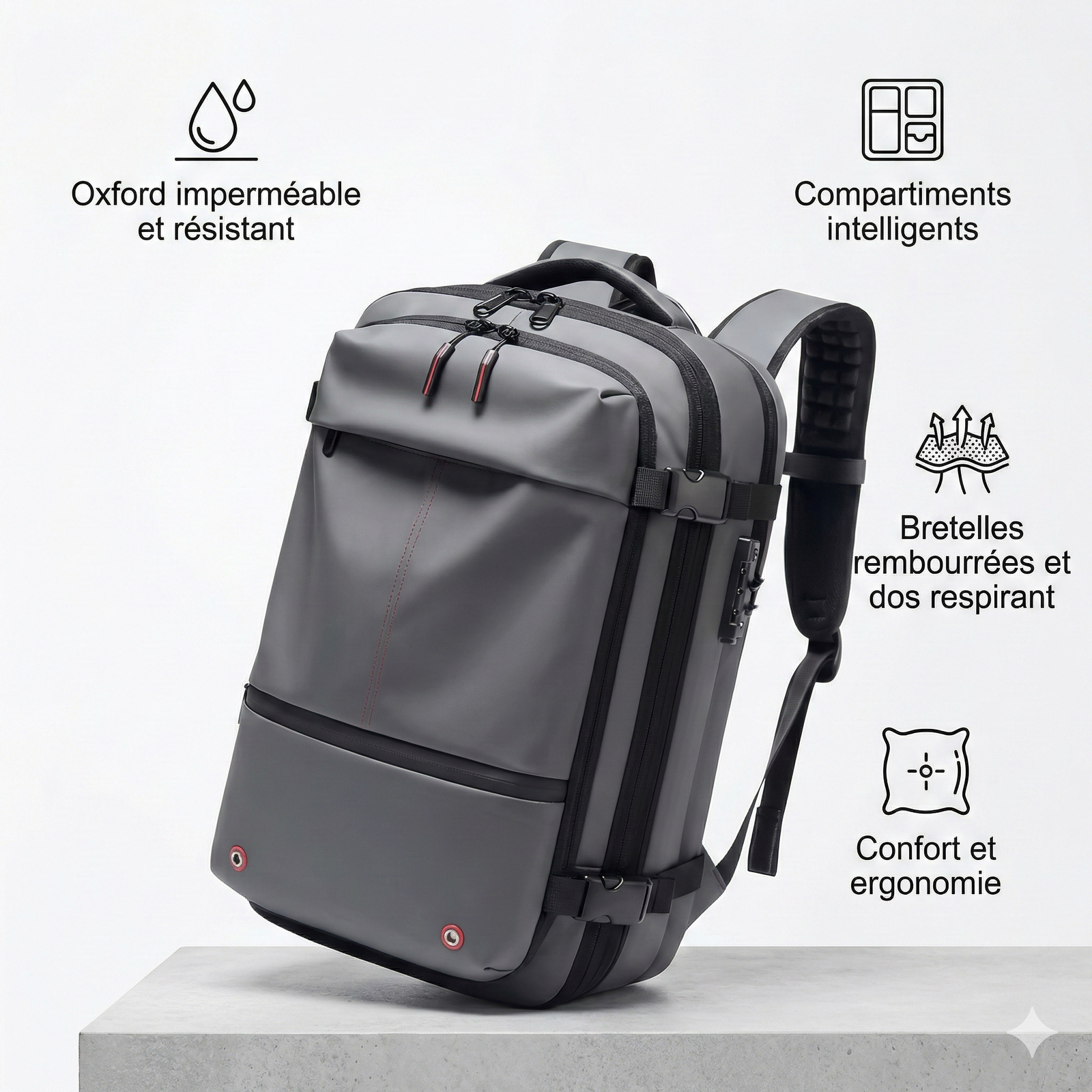 Conçu en Oxford imperméable et résistant, doté de compartiments intelligents, de bretelles rembourrées et d’un dos respirant, notre sac allie ergonomie, sécurité et élégance.